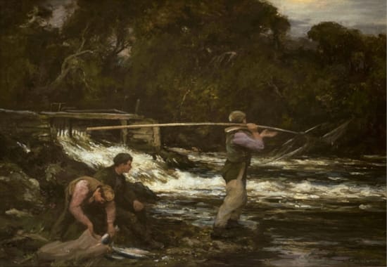 John Atkinson Grimshaw was born in Leeds, the son of an ex-policeman. He worked as a clerk for the Great Northern Railway, marrying his cousin Frances in 1858, from which date he turned to painting.