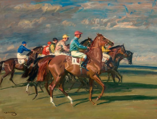 William Russell Flint was born 4th April 1880 in Edinburgh, the eldest son of Francis Wighton Flint, a commercial artist. Educated at Daniel Stewart College, Flint left school at 14 and was apprenticed to a firm of lithographers, Banks and Co, in Edinburgh as a draughtsman, and in 1895 began evening classes at the Royal Institution School of Art. In 1900 Flint moved to London, where he was initially employed as a medical illustrator and subsequently by the Illustrated London News from 1903-07, studying in the evenings at Heatherley’s School of Art. It was at the instigation of Thomas Heatherley that Flint devoted himself to watercolour and travelled to Paris exhibiting at the Salon de la Societé Nationale. Flint also visited Holland and Belgium in the company of his younger brother Robert Purves Flint (1883-1947) on a painting tour.