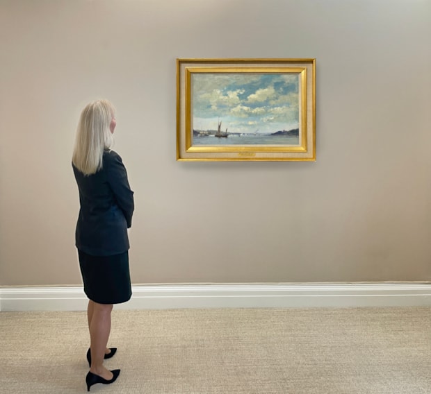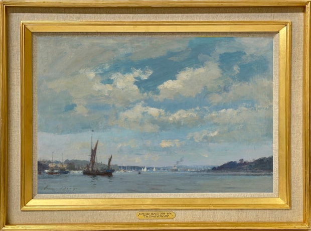 The Second World War saw Seago serving with the Royal Engineers 1939-1944 and continuing to paint, the result being an exhibition of his war paintings in 1946 shown in Norwich and Bristol. In this same year, Seago was elected to the Royal Society of British Artists. He exhibited widely, at the Royal Academy, Royal Hibernian Academy, Royal Society of Portrait Painters, The Royal Society of Painters in Watercolour, to which he was elected a member in 1959, the Paris Salon and in many other institutions. Seago travelled widely, painting in Morocco, Greece, Italy, Spain and in France to which he sailed, venturing up the Seine to Paris in his yacht. Seago was equally at home painting the Norfolk landscape as the cities of Hong Kong, London and Paris. In 1957 an exhibition of his paintings of the Duke of Edinburgh’s world tour was shown at St James’s Palace. Seago also painted Queen Elizabeth II, the Queen Mother and Princess Margaret, and was as at home with royalty and his aristocratic patrons as he was with fellow members of the Ipswich Art Club and Norwich Art Circle. His one-man shows in the 1960’s drew huge audiences, such that buyers were rationed to only one work per exhibition. He died in London, 19th January 1974.