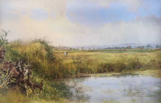 Born in Liverpool in 1874, Frank Moss Bennett moved to London to study at St. John’s Wood Art School, a highly successful private atelier, and at the Slade and Royal Academy Schools. At the latter he was awarded the gold medal and a travelling scholarship. Bennett exhibited at the Paris Salon, The Royal Institute of Painters in Watercolour and, from 1898 to 1928, at the Royal Academy. One of his earliest exhibits being “The Greek Runner Lados, falling dead as he goes to receive his crown at Olympia”, a subject in the tradition of High Victorian Art.