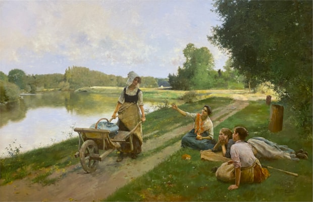 Having studied at the Academy of Fine Arts in Seville, Luis went to Rome to work for some time before following his brother to Paris where he settled in 1876. A large number of Spanish painters were working in Paris at that time and together they frequently derived their inspiration from France, the character of their work remained essentially Spanish. Luis Jiménez y Aranda was no exception, and delighted in representing the lifestyle of Spain and her people. His work was extremely well received in his adoptive country where he exhibited at the Paris Salon from 1878 onwards, and in Germany, where he exhibited in Munich and Berlin, receiving awards in both cities.