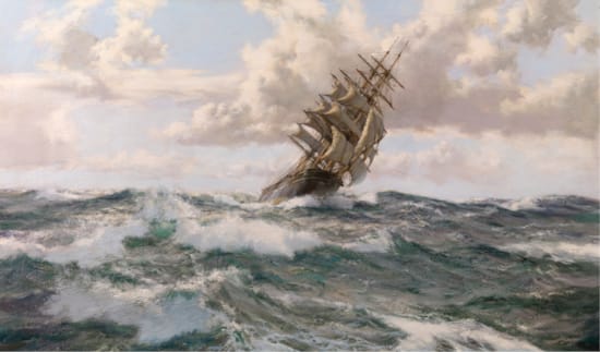 Munnings drew his subject matter from the East Anglian landscape and rural society. A horse fair of 1901 showed an early interest in horses while fairgrounds and rural occupations provided the artist with considerable subject matter. 1910 saw Munnings visit Lamorna in Cornwall where he met Laura (1877-1970) and Harold Knight (1874-1961), lifelong friends, and where he stayed between 1911 and 1916. In 1913 he held his first one-man show at the Leicester Galleries, where Laura Knight, DBE, RA showed.