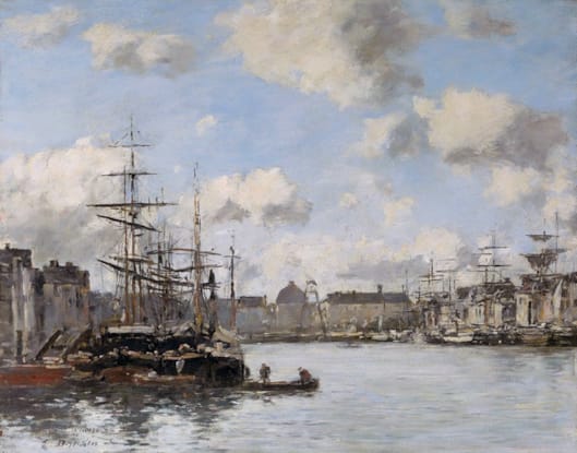 Boudin associated with a number of artists including Théodule Augustin Ribot (1823-1891), Thomas Couture (1815-1879), Constant Troyon (1810-1865) and Louis-Gabriel-Eugène Isabey (1803-1886), and was encouraged to move to Paris to study. Success eluded him; however in 1859 Boudin was awarded a grant by the City of Le Havre to study in Paris for three years. Boudin travelled extensively and would do so all his life, in his early years painting in Normandy and Brittany.