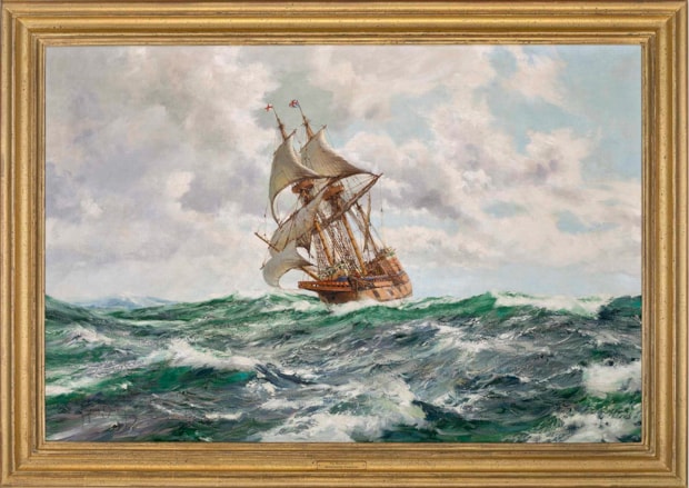 His popularity was such that the New Mariners Museum in Newport Rhode Island opened a wing devoted to his works in 1975, and Presidents Eisenhower and Johnson owned paintings of the US Navy Frigate Constellation. A member of the Royal Society of Marine Artists and a fellow of the Royal Society of British Artists, Dawson was the foremost marine painter of the 20th century.