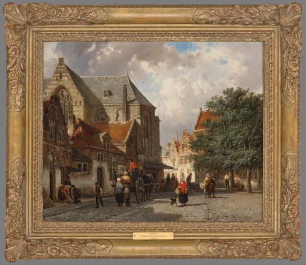 Springer studied at the Amsterdam Academy, the town of his birth from 1827 until 1835 under Jacobus van der Stok (1795-1864) and Hendrik ten Cate (1803-1856) and then with Kaspar Karsen (1810-1896) between 1835 and 1837. As a painter of town scenes, Springer travelled extensively in Holland and also in Belgium and Germany. In 1847 he was awarded a gold medal of merit and in 1865 was made Chevalier of the Order of Leopold in Belgium. He was instrumental in planning the foundation of the Rijksmuseum in Amsterdam. Springer exhibited frequently during his career and, as a teacher, featured Adrianus Eversen (1818-1897) and Johan Adolphe Rust (1828-195) among his pupils.