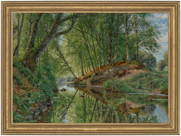 Peder Mønsted was born in Balle Mølle, near Grenaa in eastern Denmark on 10th December 1859. He studied at the Prince Ferdinand’s Drawing School, Aarhus where he studied under Andries Fritz (1828-1906), a landscape and portrait painter, before moving to Copenhagen. Here he studied at the Royal Academy of Art between 1875 and 1878, and was taught figure painting by Julius Exner (1825-1910). Here too he would have come across the work of artists such as Christen Kobke (1810-1848), an outstanding colourist and Peter Christian Skovgaard (1817-1875), a romantic nationalist painter, a knowledge of whose work is seen in the Danish landscapes and beech forests of Mønsted’s. As early as 1874, at the age of 15, he took part in the December Exhibition in Copenhagen. In 1878 Mønsted left the Academy to study under the artist Peder Severin Krøyer (1851-1909).