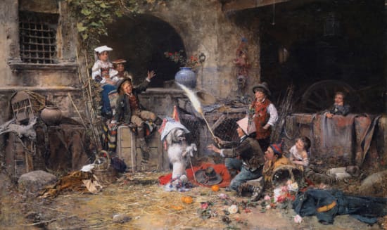 Peder Mønsted was born in Balle Mølle, near Grenaa in eastern Denmark on 10th December 1859. He studied at the Prince Ferdinand’s Drawing School, Aarhus where he studied under Andries Fritz (1828-1906), a landscape and portrait painter, before moving to Copenhagen. Here he studied at the Royal Academy of Art between 1875 and 1878, and was taught figure painting by Julius Exner (1825-1910). Here too he would have come across the work of artists such as Christen Kobke (1810-1848), an outstanding colourist and Peter Christian Skovgaard (1817-1875), a romantic nationalist painter, a knowledge of whose work is seen in the Danish landscapes and beech forests of Mønsted’s. As early as 1874, at the age of 15, he took part in the December Exhibition in Copenhagen. In 1878 Mønsted left the Academy to study under the artist Peder Severin Krøyer (1851-1909).