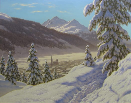 Peder Mønsted was born in Balle Mølle, near Grenaa in eastern Denmark on 10th December 1859. He studied at the Prince Ferdinand’s Drawing School, Aarhus where he studied under Andries Fritz (1828-1906), a landscape and portrait painter, before moving to Copenhagen. Here he studied at the Royal Academy of Art between 1875 and 1878, and was taught figure painting by Julius Exner (1825-1910). Here too he would have come across the work of artists such as Christen Kobke (1810-1848), an outstanding colourist and Peter Christian Skovgaard (1817-1875), a romantic nationalist painter, a knowledge of whose work is seen in the Danish landscapes and beech forests of Mønsted’s. As early as 1874, at the age of 15, he took part in the December Exhibition in Copenhagen. In 1878 Mønsted left the Academy to study under the artist Peder Severin Krøyer (1851-1909). Mønsted travelled extensively throughout his long career, being a frequent visitor to Switzerland, Italy and North Africa. In 1883 Mønsted travelled to Paris where he worked with William-Adolphe Bouguereau (1825-1905) for four months. As early as 1884, he visited North Africa returning later in the decade. The early years of the 20th century saw Mønsted returning to Switzerland, the south of France and Italy, the latter being the source of inspiration for many Scandinavian artists of the 19th century. The war years curtailed Mønsted’s travel to Norway and Sweden, however the 1920’s and 1930’s saw him return to the Mediterranean. From 1879 to 1941 he exhibited regularly at the annual Charlottenborg Exhibition. Throughout his long career, Mønsted continued to paint the Danish landscape and coastline. His is a romantic, poetic view of nature; he was an artist who depicted the grandeur and monumental aspect of the landscape, with a remarkable eye for detail and colour. He was also known for a number of portraits, including that of King George I of Greece. His works can be found in museums in: Aalborg and Bautzen.