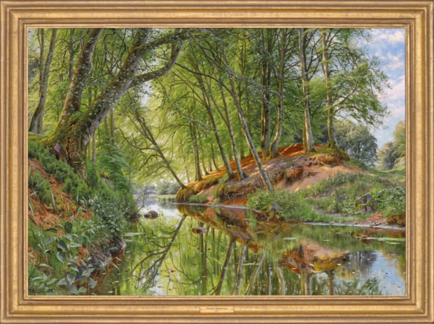 Peder Mønsted was born in Balle Mølle, near Grenaa in eastern Denmark on 10th December 1859. He studied at the Prince Ferdinand’s Drawing School, Aarhus where he studied under Andries Fritz (1828-1906), a landscape and portrait painter, before moving to Copenhagen. Here he studied at the Royal Academy of Art between 1875 and 1878, and was taught figure painting by Julius Exner (1825-1910). Here too he would have come across the work of artists such as Christen Kobke (1810-1848), an outstanding colourist and Peter Christian Skovgaard (1817-1875), a romantic nationalist painter, a knowledge of whose work is seen in the Danish landscapes and beech forests of Mønsted’s. As early as 1874, at the age of 15, he took part in the December Exhibition in Copenhagen. In 1878 Mønsted left the Academy to study under the artist Peder Severin Krøyer (1851-1909).