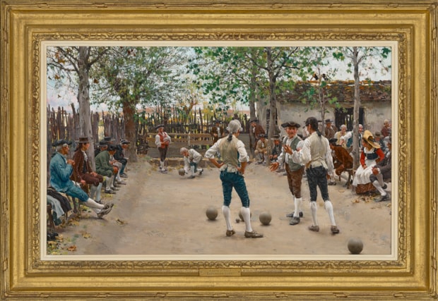 Sorbi exhibited many works of this specific genre including “The Road to Pompeii under Rain”, “The Terracotta Vendor”, “The Liquor Seller” and “A Roman Idyll”. In later years Sorbi turned away from this genre turning more to scenes of everyday life, frequently set in the eighteenth century, subjects like “A Game of Morra”, or “The Serenade”. Sorbi was enormously popular throughout Europe and the United States, as can be gauged by the fact that he was represented by the leading Paris dealer Goupil. His highly detailed style, quality of light and subject matter being of universal appeal. He exhibited works in Florence, Parma and Paris.
