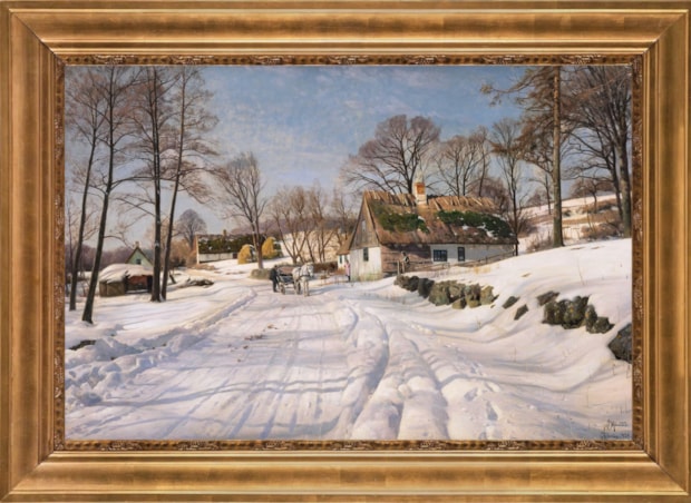 Peder Mønsted was born in Balle Mølle, near Grenaa in eastern Denmark on 10th December 1859. He studied at the Prince Ferdinand’s Drawing School, Aarhus where he studied under Andries Fritz (1828-1906), a landscape and portrait painter, before moving to Copenhagen. Here he studied at the Royal Academy of Art between 1875 and 1878, and was taught figure painting by Julius Exner (1825-1910). Here too he would have come across the work of artists such as Christen Kobke (1810-1848), an outstanding colourist and Peter Christian Skovgaard (1817-1875), a romantic nationalist painter, a knowledge of whose work is seen in the Danish landscapes and beech forests of Mønsted’s. As early as 1874, at the age of 15, he took part in the December Exhibition in Copenhagen. In 1878 Mønsted left the Academy to study under the artist Peder Severin Krøyer (1851-1909). Mønsted travelled extensively throughout his long career, being a frequent visitor to Switzerland, Italy and North Africa. In 1883 Mønsted travelled to Paris where he worked with William-Adolphe Bouguereau (1825-1905) for four months. As early as 1884, he visited North Africa returning later in the decade. The early years of the 20th century saw Mønsted returning to Switzerland, the south of France and Italy, the latter being the source of inspiration for many Scandinavian artists of the 19th century. The war years curtailed Mønsted’s travel to Norway and Sweden, however the 1920’s and 1930’s saw him return to the Mediterranean. From 1879 to 1941 he exhibited regularly at the annual Charlottenborg Exhibition. Throughout his long career, Mønsted continued to paint the Danish landscape and coastline. His is a romantic, poetic view of nature; he was an artist who depicted the grandeur and monumental aspect of the landscape, with a remarkable eye for detail and colour. He was also known for a number of portraits, including that of King George I of Greece. His works can be found in museums in: Aalborg and Bautzen.